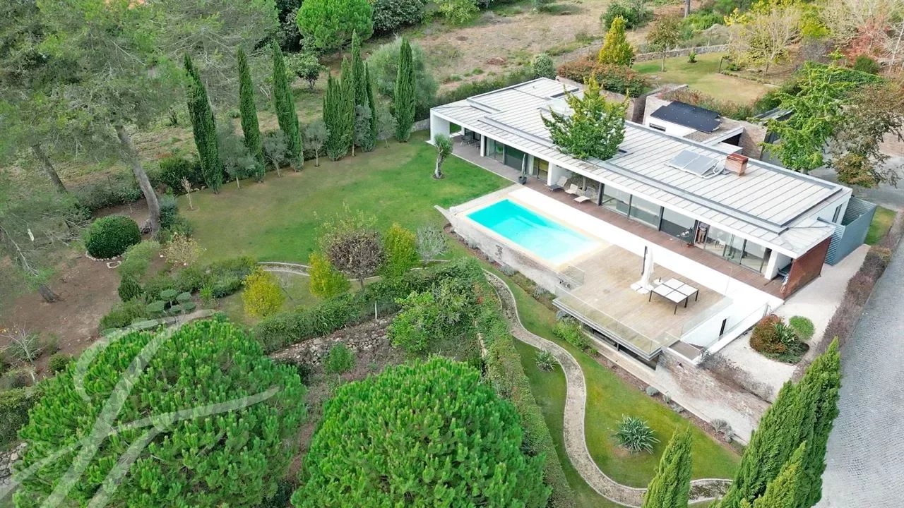 Moradia moderna | eco-sustentável | 3 suites | 1 quarto | Escritório | área bruta 422m2 | piso único | terreno 4950m2 | Privacidade total | piscina | Garagem